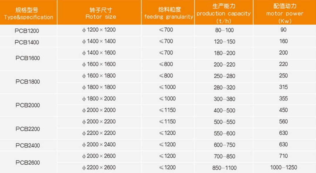 該機型可將塊狀物料- - 次性破碎成0- 140mm之間不同規格的石子完成了顎式破碎機和反擊式破碎機的綜合功能,達到了事半功倍的效果,實現了一破頂兩破的低成本運營。